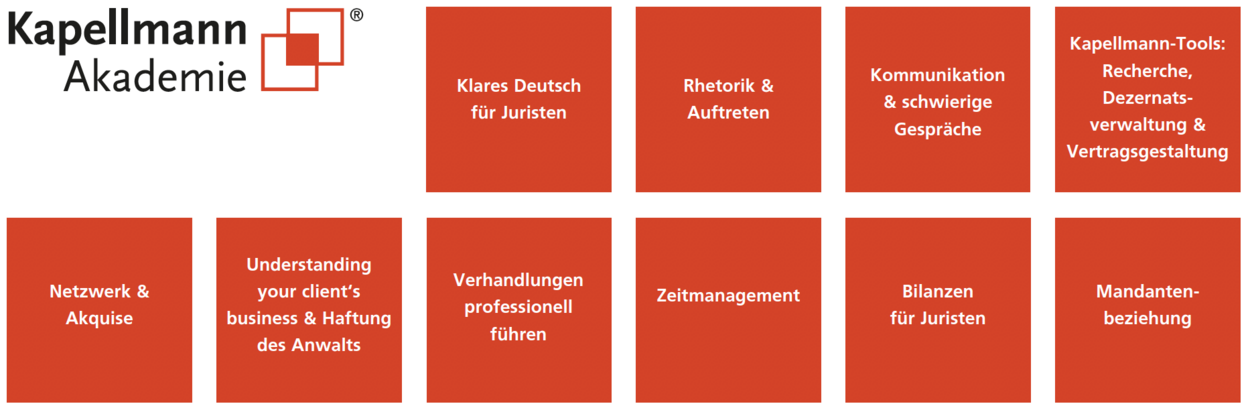 Unter dem Dach der Kapellmann Akademie bieten wir Ihnen unsere regelmäßigen Junganwaltstreffen in Kooperation mit Bucerius Education zu Soft-Skill-Themen sowie weitere interne und externe Schulungen an. Die Teilnahme an Fachanwaltskursen fördern wir.